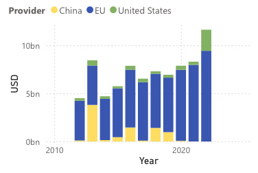 Source: OECD Devlopment Finance for Climate and Environment, and AidData's Global Chinese Development Finance Dataset