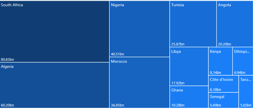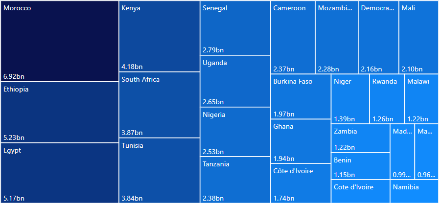 Main Source of Environmental Goods Exports to Africa, Cumulative total (in USD)