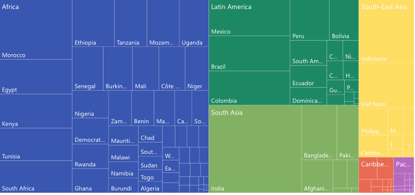 Learn More >Latin America followed, receiving ~20% of the total. South Asia and South-East Asia received ~17 and 7%, respectively.