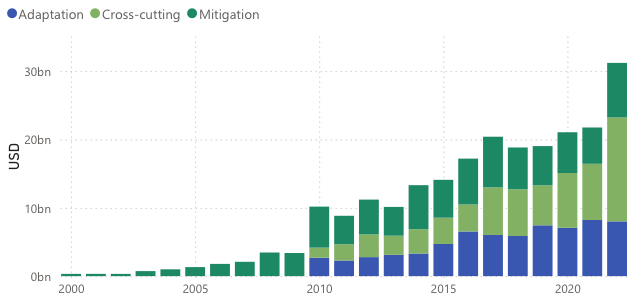 Deployment of public climate-related development finance to Africa, yearly total amount, USD